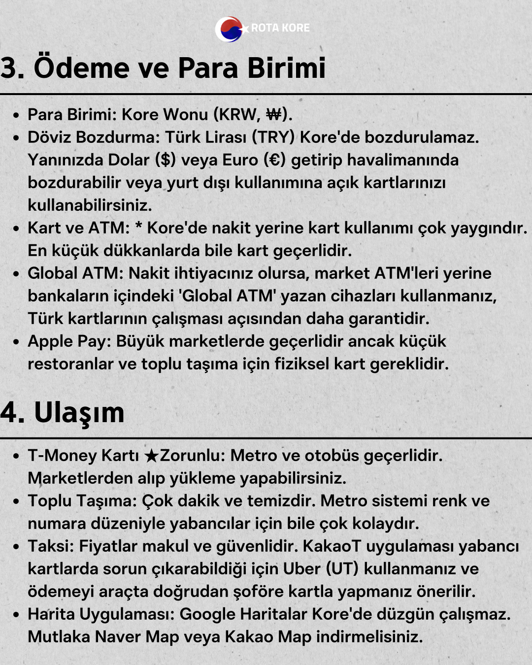 - Dolar getirip Kore’de bozdurmanız önerilir